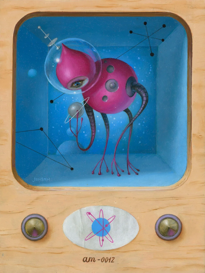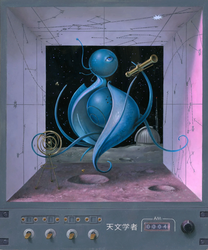 Bruce Jensen began illustrating covers for science fiction novels after his graduation from the Columbus College of Art and Design in 1984. Clients included Berkley publishing, Bantam Spectra, Ballantine Del Rey, Penguin/Roc, Tor Books, the Science Fiction Book Club, Marvel Comics, DC Comics, and Omni magazine. His artwork has graced the covers of books by Philip K. Dick, Neal Stephenson, Bruce Sterling, Robert Silverberg, Robert Heinlein, Arthur C Clark, Joe Haldeman, Pat Cadigan, Frederick Pohl, and A.E. Van Vogt among many others. His illustration work can be seen in Spectrum: the best in fantastic art volumes 1-13, 15, 18, 20, 25, IBA 7 & 8, Infinite Worlds, and Illustrators 35 & 40.